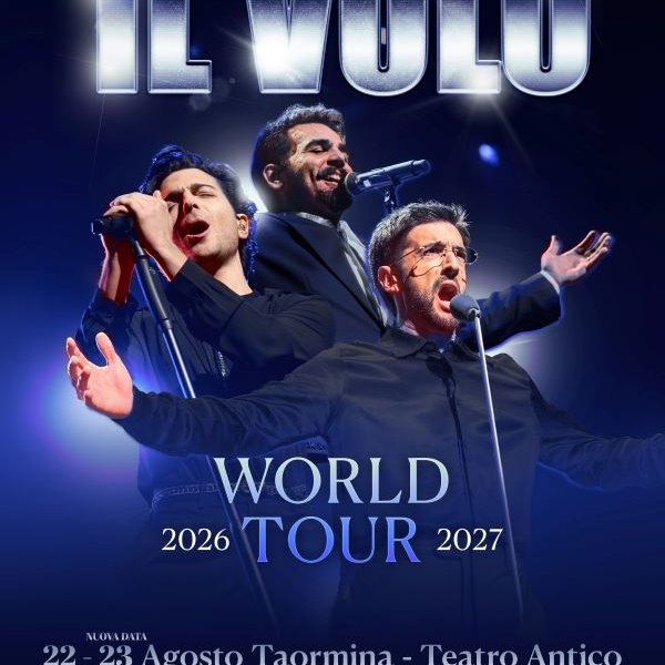IL VOLO aggiunge un nuovo appuntamento al calendario estivo del WORLD TOUR 2026-202. Il trio si esibirà sabato 22 agosto 2026 al Teatro Antico di Taormina (ME), uno dei palcoscenici più iconici e suggestivi del panorama internazionale, che farà da cornice a una serata speciale all’insegna della grande musica dal vivo.