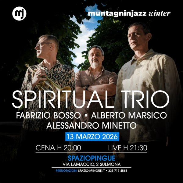 si comunica che il concerto "Spiritual Trio", progrmamato venerdì 13/03/2026 presso Spazio Pingue di Sulmona, è stato sostituito con Drumpet.